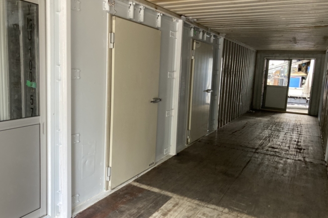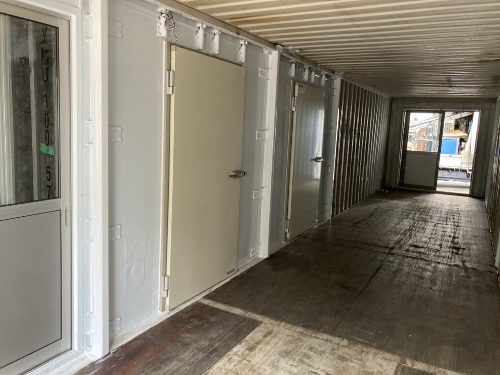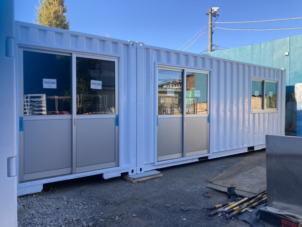 埼玉県に20ftの中古海上コンテナ9本と20ft冷凍冷蔵コンテナ4本を使用した大型の倉庫兼大型冷凍冷蔵ルームを設置させていただきました。