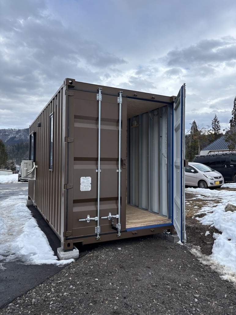 長野県北安曇郡白馬村にて、スキー場から3分の位置にある宿泊施設「白馬の黒馬 Darkhorse @ Hakuba」様の乾燥室(ドライルーム)コンテナ、およびスタッフルーム用コンテナを設置させていただきました。