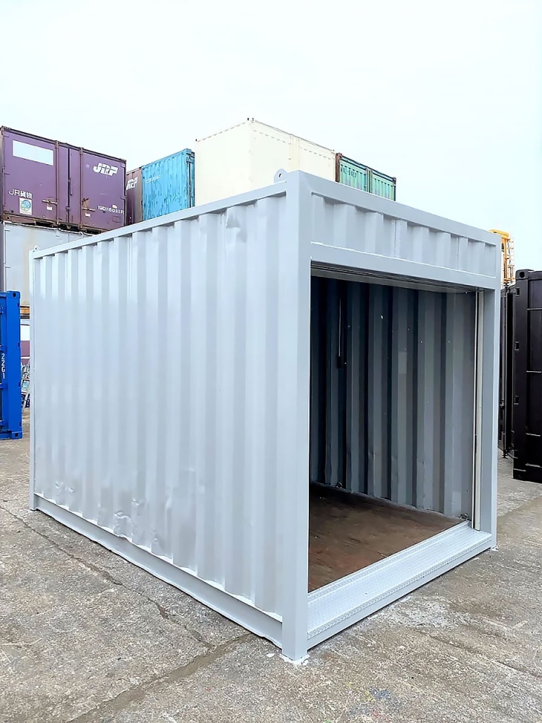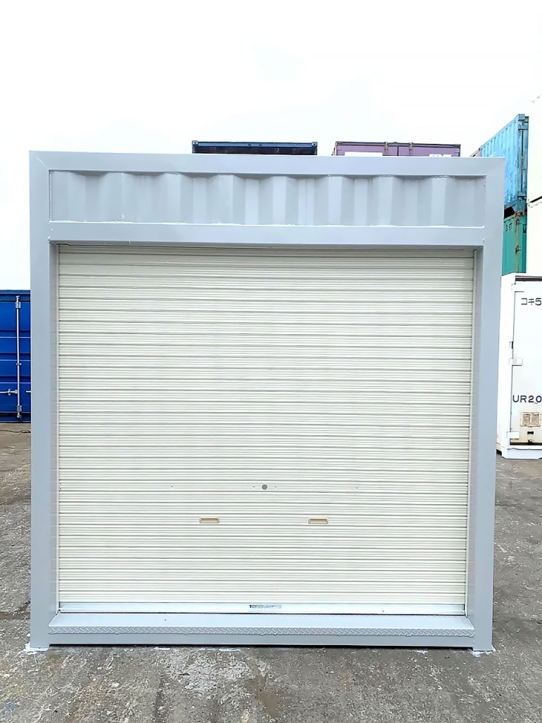 中古 12ft海上コンテナ シャッター付き グレー塗装済み